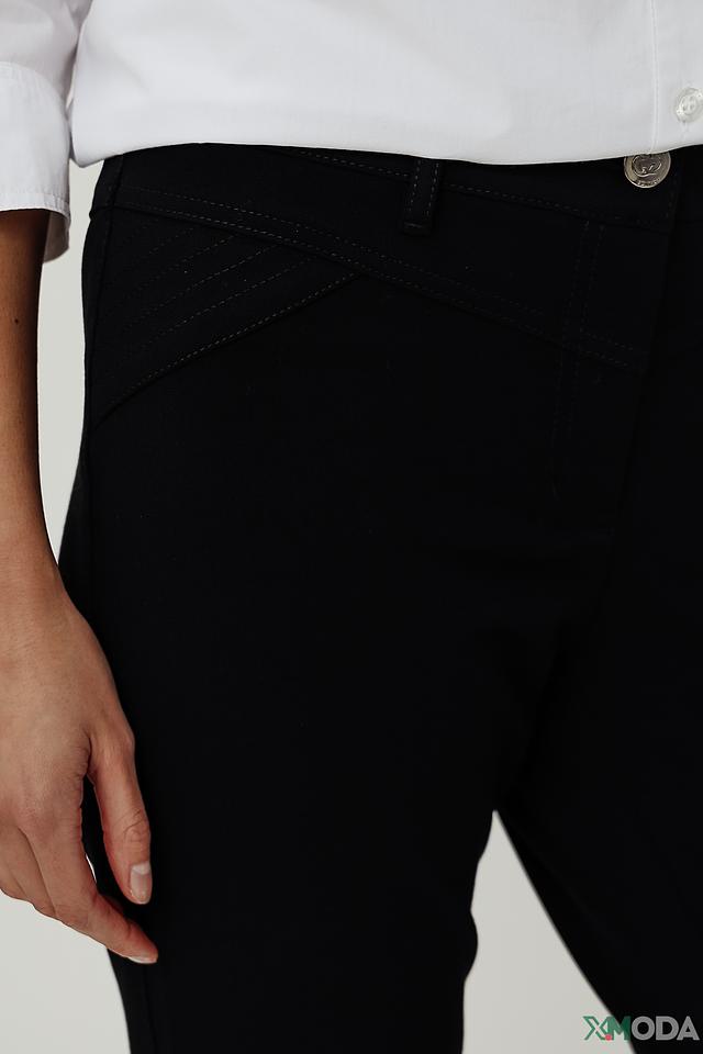 Брюки имеют прямой крой, который обеспечивает комфортную посадку и свободу движений. Высокая посадка визуально удлиняет ноги и подчеркивает талию. Декоративные элементы в виде аккуратных вытачек на талии придают брюкам изысканный вид.