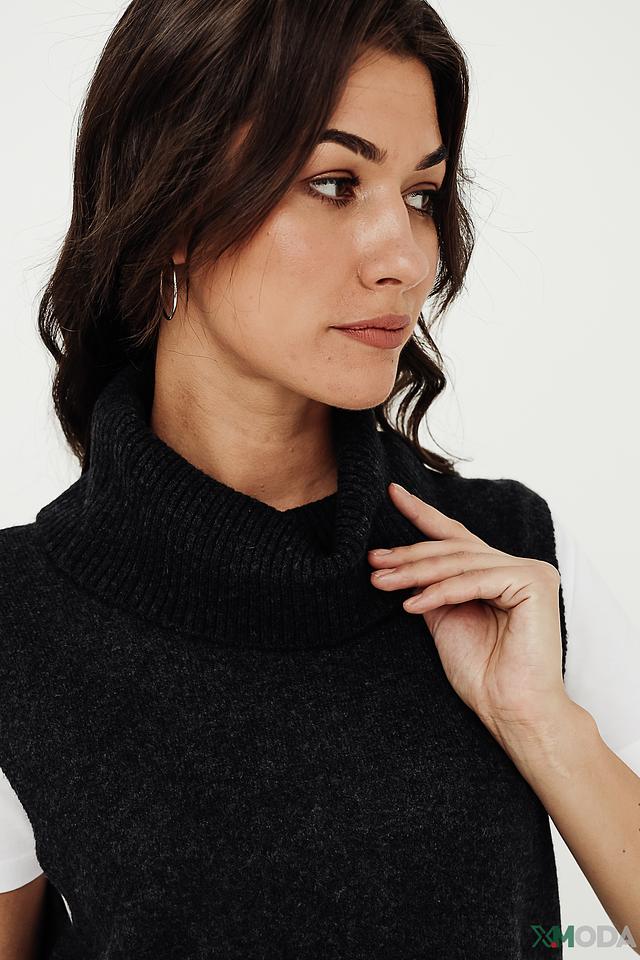 Чёрный жилет Gerry Weber EDITION из мягкой фактурной вязки станет стильным дополнением к вашему гардеробу. Модель с высоким воротом и свободным кроем идеально подходит для создания многослойных образов. Состав: полиамид 37%, полиакрил 35%, шерсть 20%, альпака 5%, эластан 3%