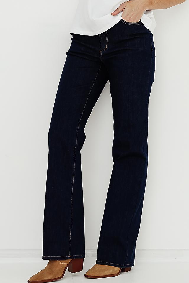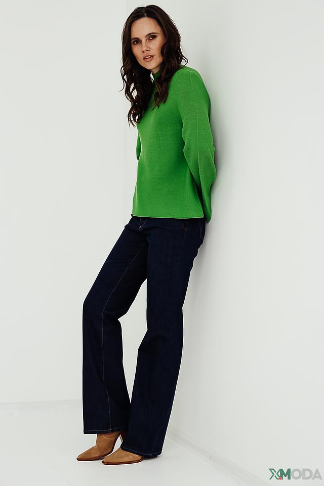Джинсы имеют расклешенный крой, который визуально удлиняет ноги и создает элегантный силуэт. Высокая посадка подчеркивает талию и обеспечивает комфортную посадку.