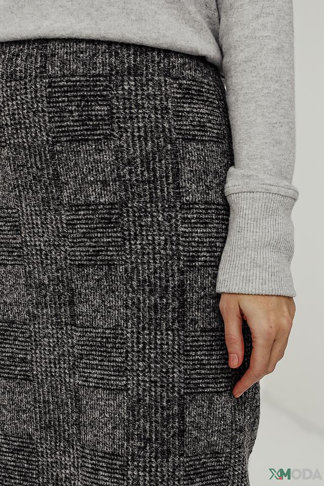 Юбка имеет прямой крой и длину до колена, что делает ее подходящей для различных типов фигур. Изготовлена из смеси шерсти, полиакрила и полиэстера, что обеспечивает комфорт и практичность в носке.