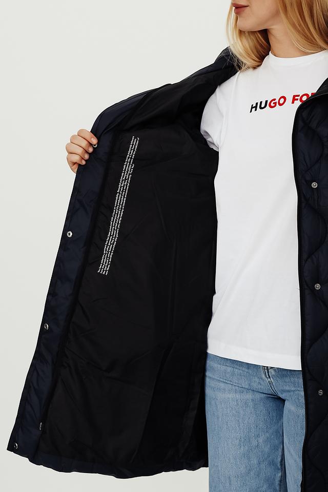 Модель имеет стеганую фактуру, которая придает ей современный вид и обеспечивает дополнительную теплоизоляцию. Пальто застегивается на кнопки, что удобно и быстро. Капюшон защитит от ветра и дождя.