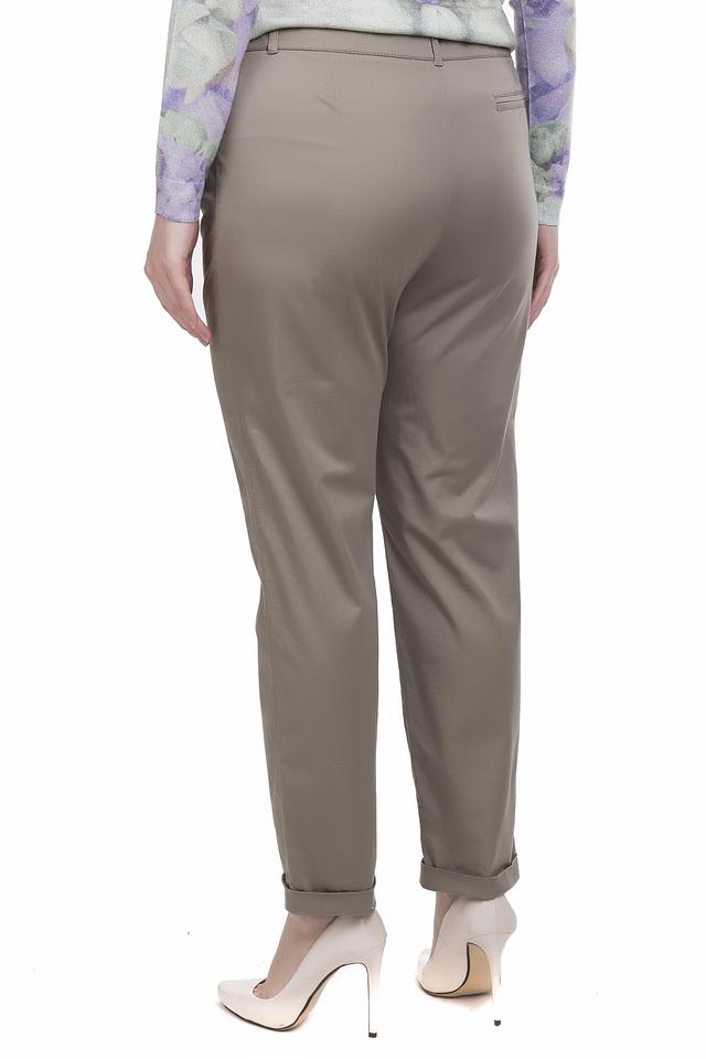 Брюки имеют классический крой с зауженными штанинами и аккуратными отворотами, что придает им современный и стильный вид. Застежка на молнию и пуговицу обеспечивает надежную фиксацию. Модель дополнена функциональными карманами.