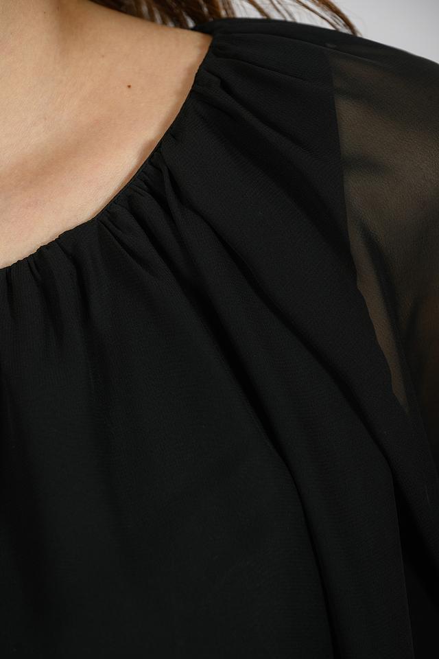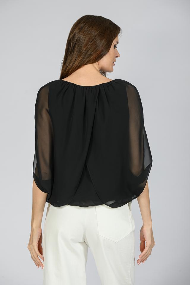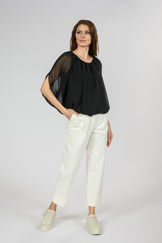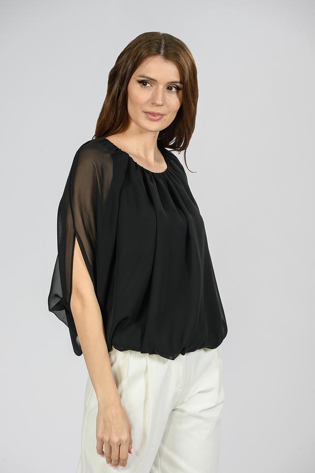 Чёрная блуза Giorgio Grati с рукавами-крыльями – элегантная и воздушная модель. Изготовлена из лёгкой, полупрозрачной ткани, что придает ей особую изысканность и женственность. Состав: полиэстер 100%, Состав_подкладка полиэстер 100%