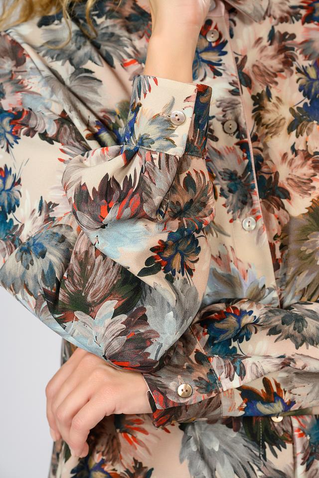 Женская блуза Giorgio Grati бежевого цвета с ярким цветочным принтом станет стильным дополнением к вашему гардеробу. Модель с длинными рукавами и классическим воротником застегивается на пуговицы. Состав: полиэстер 92%, эластан 8%