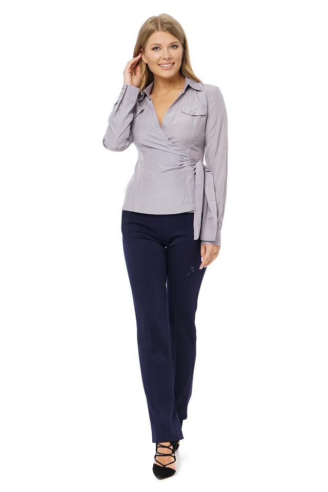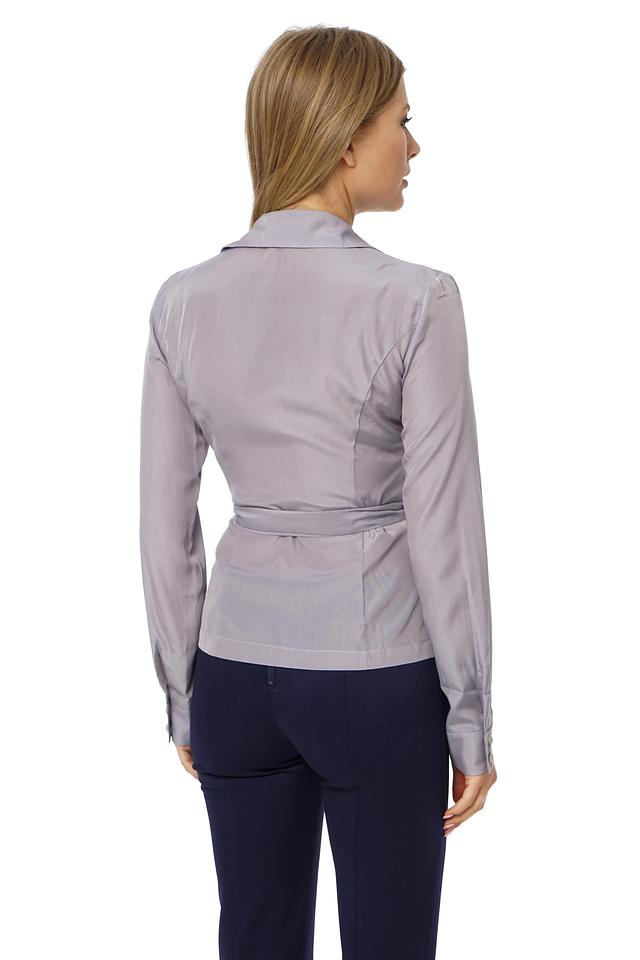Блуза имеет удобный крой с запахом, который визуально стройнит фигуру и подчеркивает достоинства. Длинные рукава и аккуратный воротник добавляют элегантности. Модель завязывается на талии при помощи пояса, что позволяет регулировать посадку и создавать более женственный силуэт.