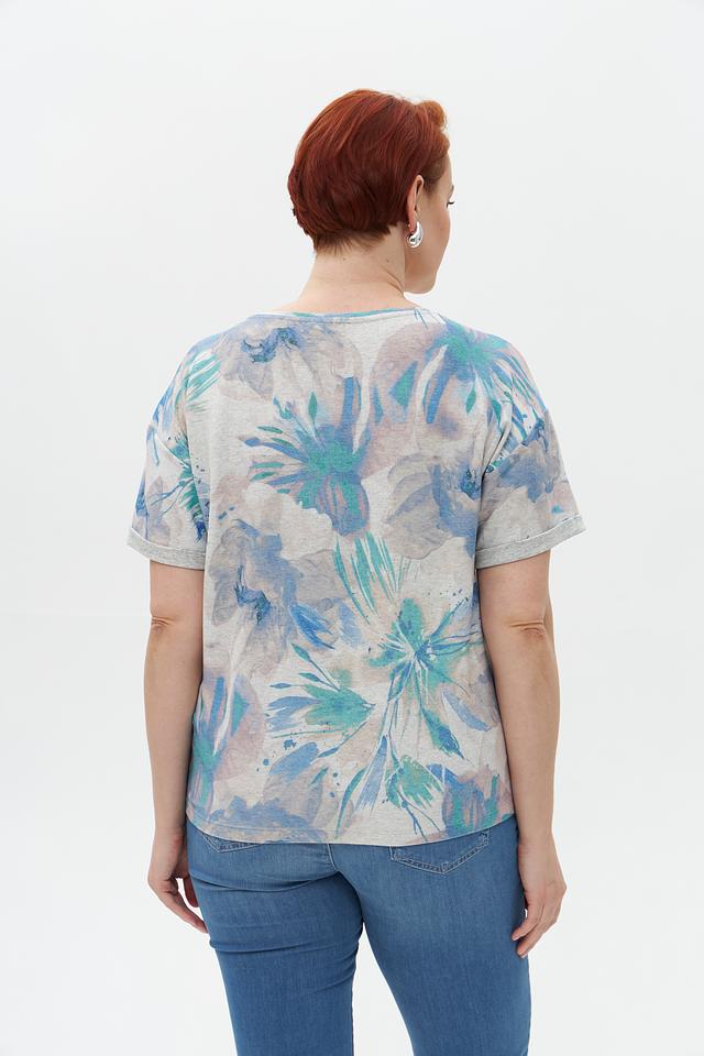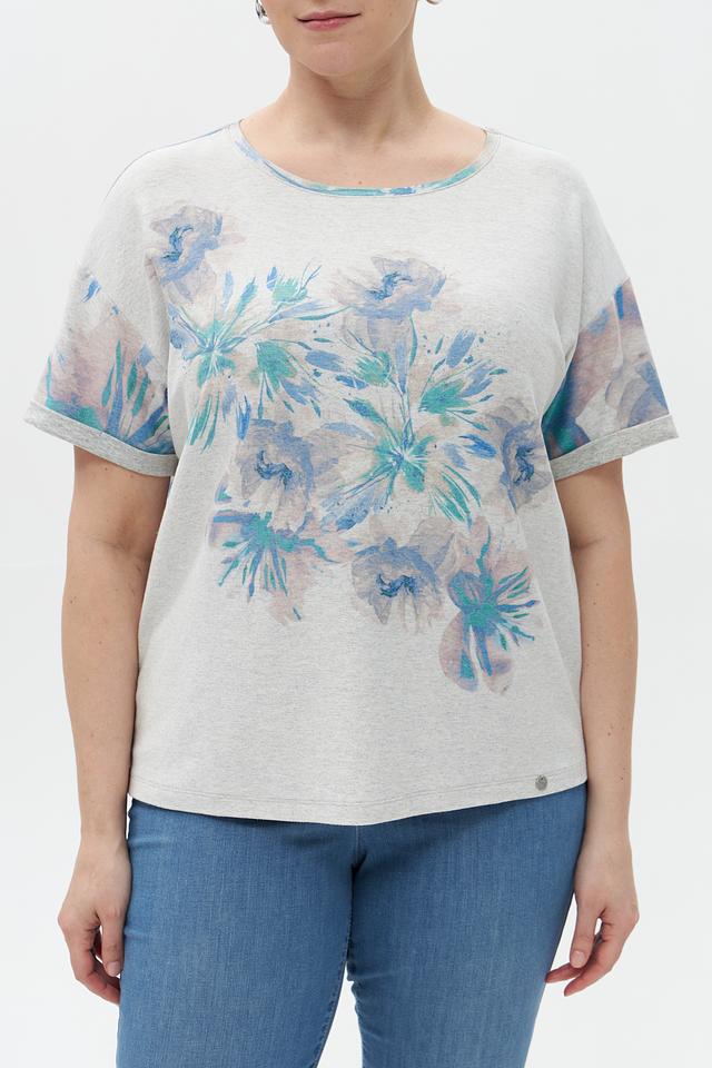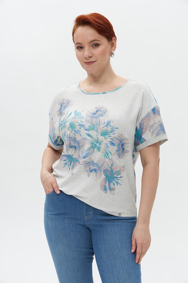 Эта стильная футболка от Gollehaug выполнена в светло-сером цвете и украшена ярким цветочным принтом, который придает ей женственности и легкости. Футболка имеет прямой крой и короткие рукава, что обеспечивает свободу движений и комфорт в жаркую погоду.
