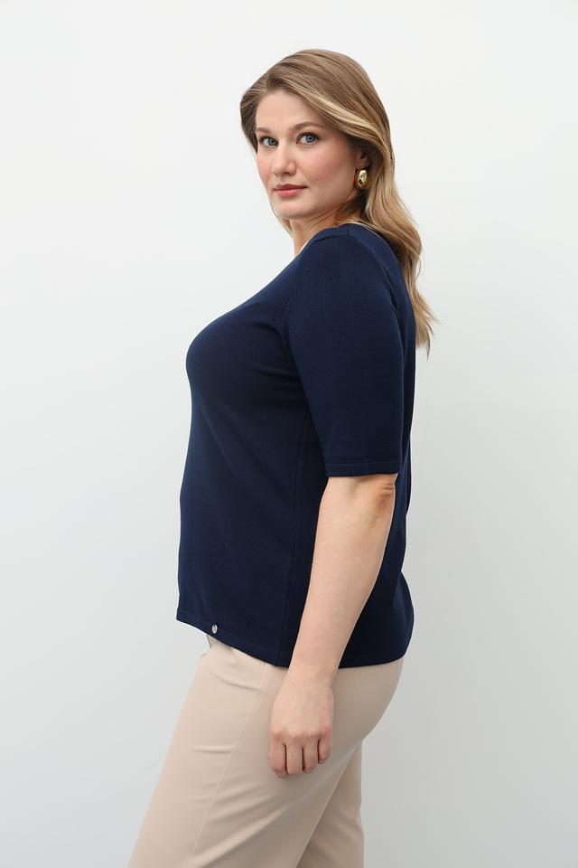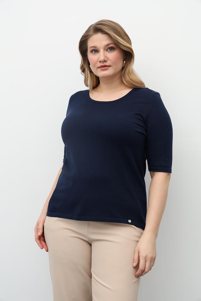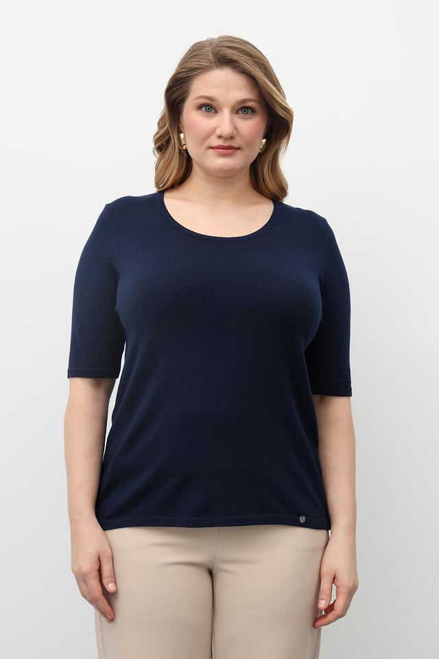 Текстурная вязка придает пуловеру изысканный вид, а насыщенный темно-синий цвет легко сочетается с другими элементами гардероба.