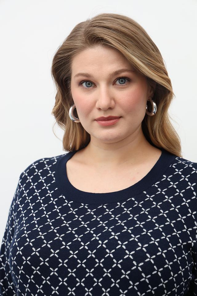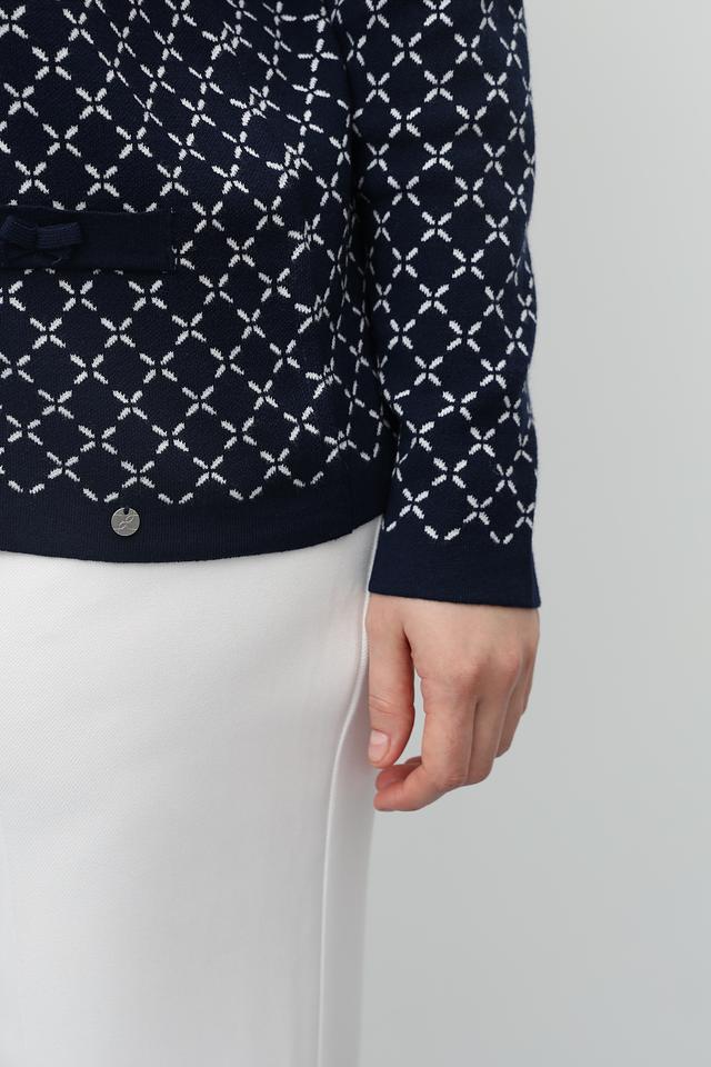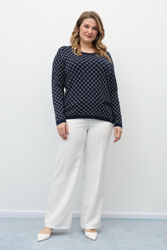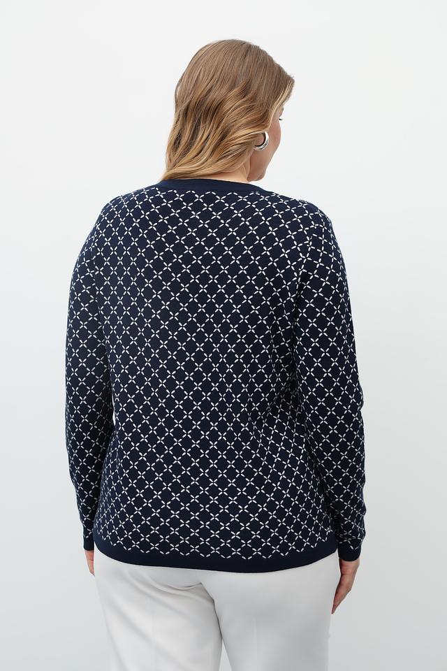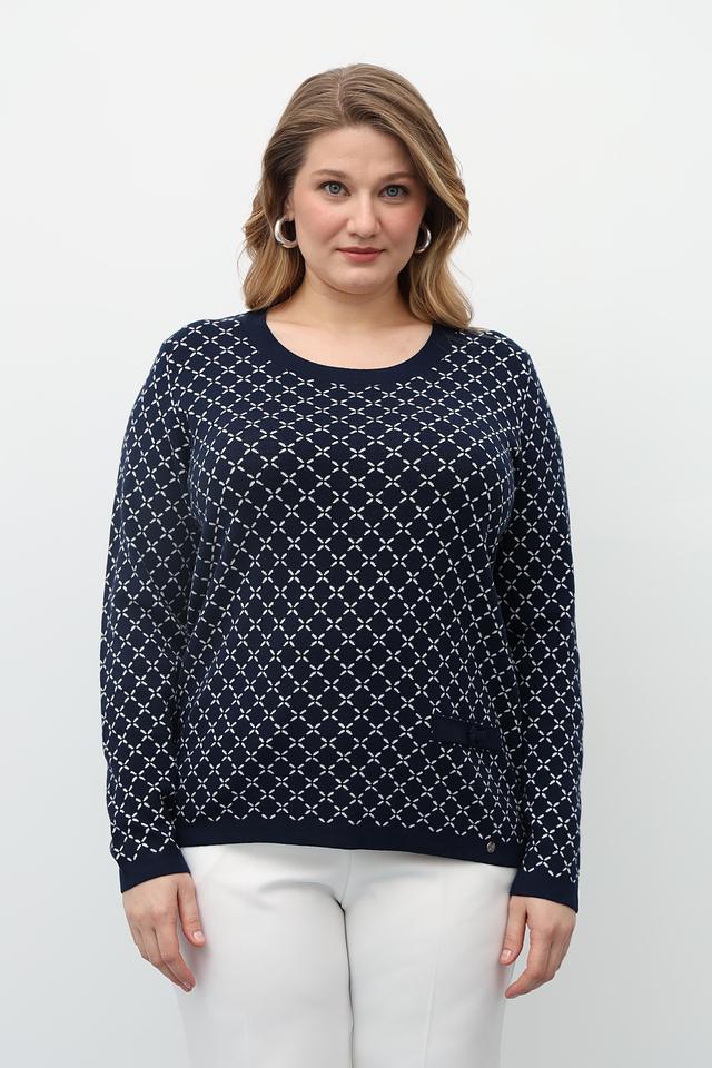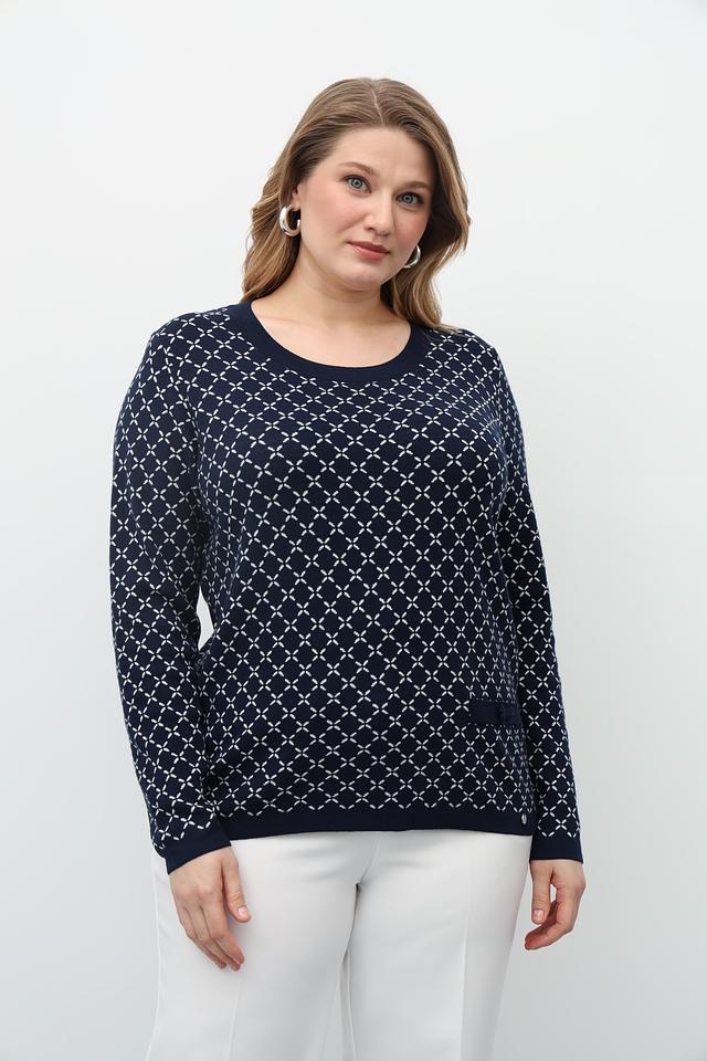 Этот стильный пуловер от Gollehaug выполнен в тёмно-синем цвете и украшен выразительным геометрическим узором. Модель имеет классический круглый вырез горловины и длинные рукава, что делает его универсальным для различных образов.