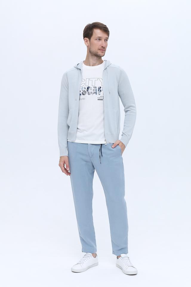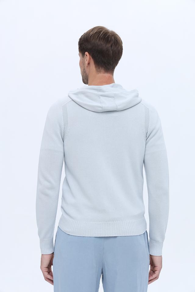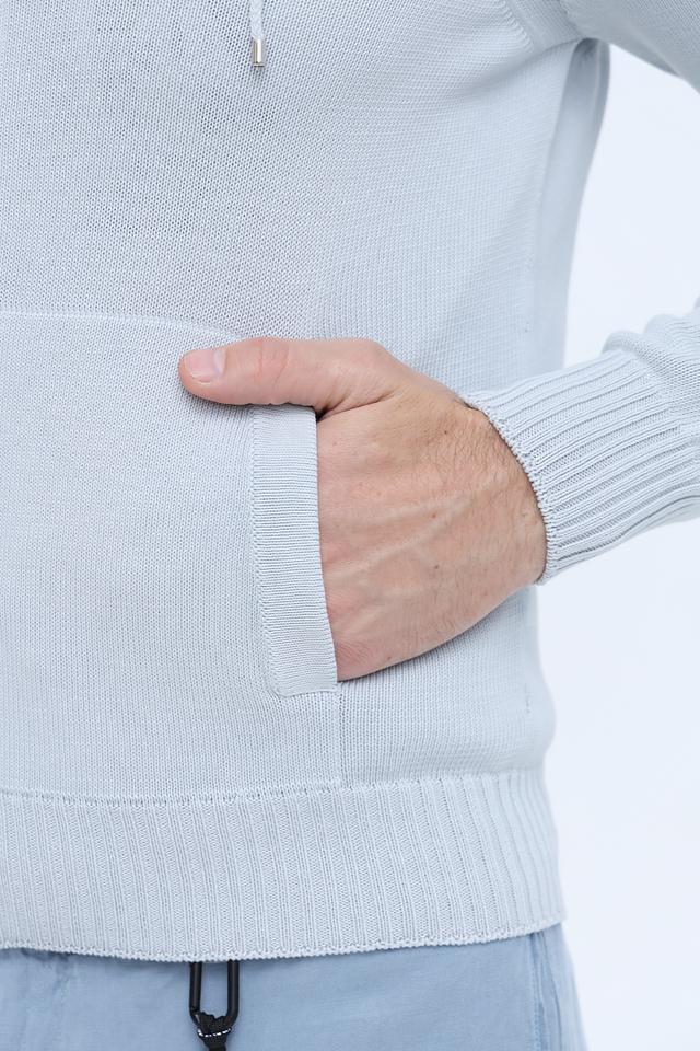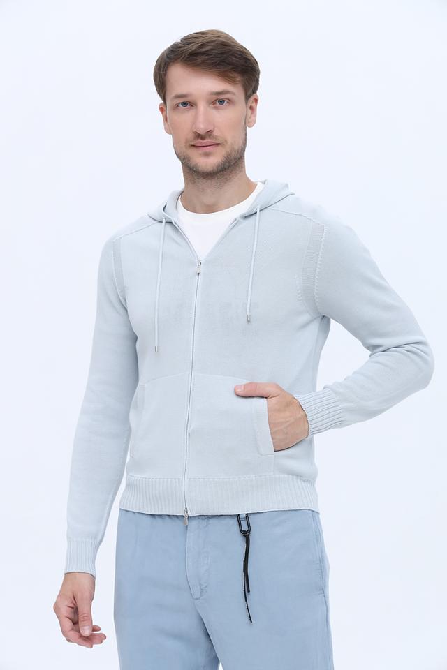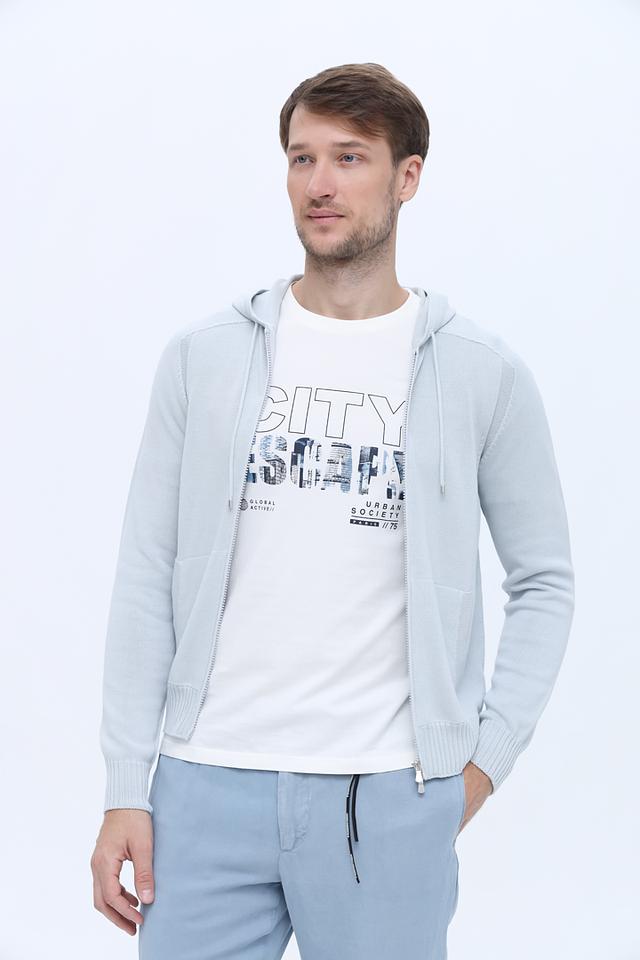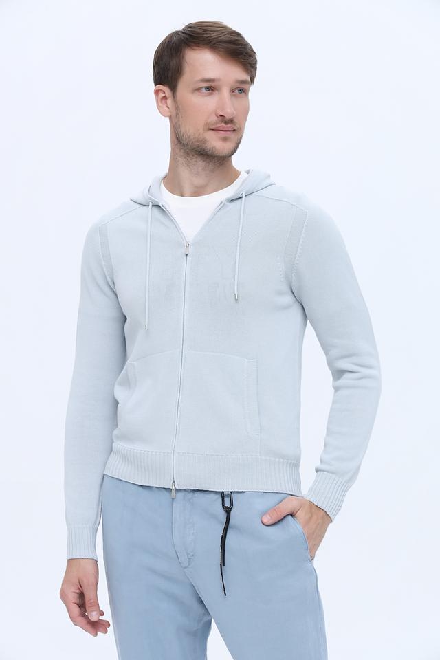Мужской кардиган от Gran Sasso выполнен в светло-голубой цветовой гамме. Модель имеет удобную застежку-молнию, капюшон с регулируемыми шнурками и два боковых кармана.
