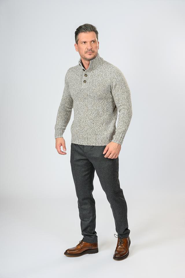 Серый пуловер Gran Sasso из 100% шерсти с воротником и пуговицами – это стильное и комфортное решение для прохладной погоды. Классический крой и натуральный материал обеспечивают удобную посадку и приятные тактильные ощущения. Состав: шерсть 100%
