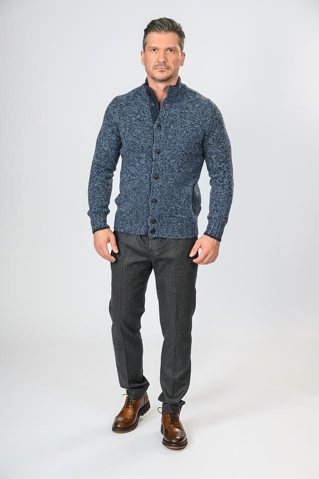 Мужской кардиган Gran Sasso синего меланжа – это стильная и комфортная модель на пуговицах. Изготовлен из 100% шерсти, обеспечивающей тепло и мягкость. Идеальный выбор для создания элегантного повседневного образа. Состав: шерсть 100%