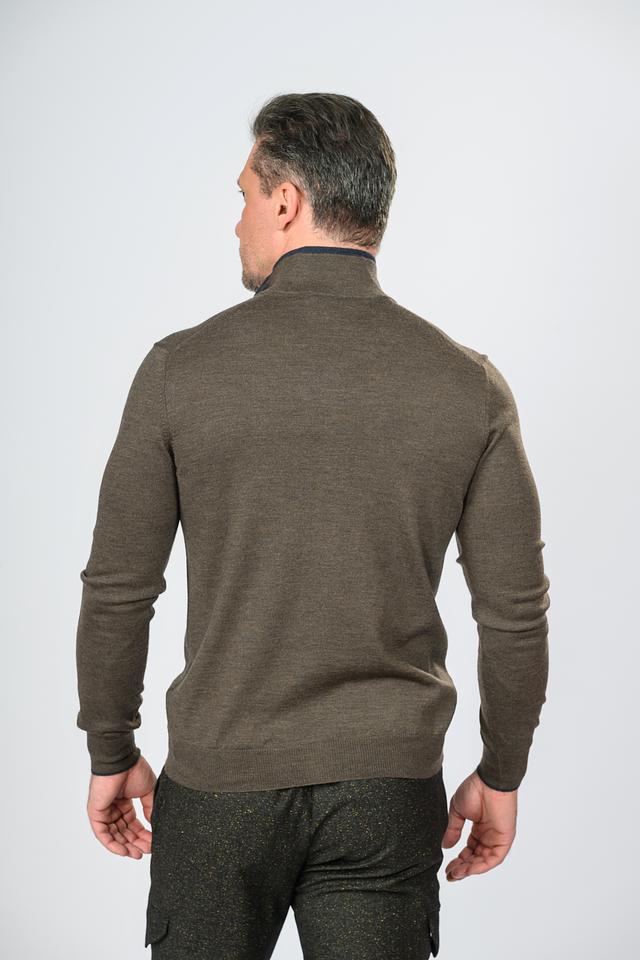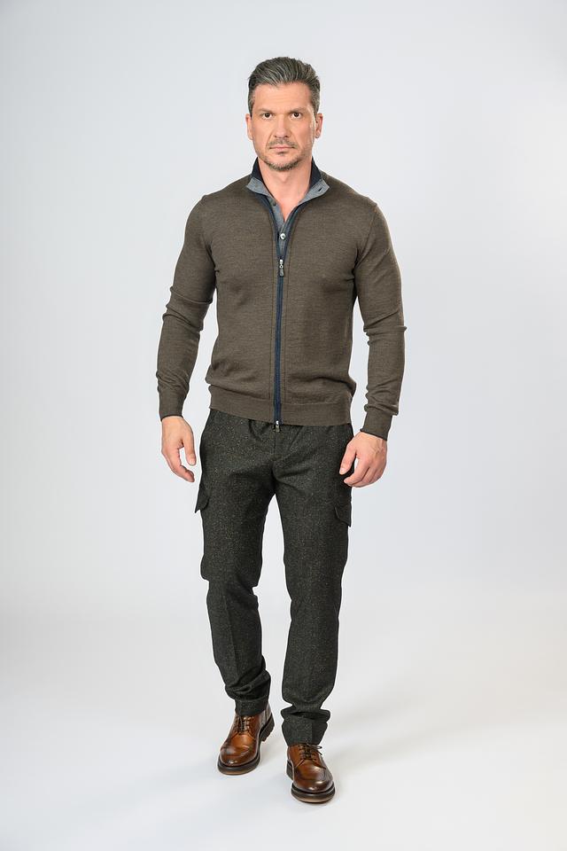 Мужской кардиган Gran Sasso оливкового цвета на молнии с контрастной отделкой. Изготовлен из 100% шерсти, обеспечивающей комфорт и тепло. Стильный и универсальный выбор для создания элегантного образа. Состав: шерсть 100%