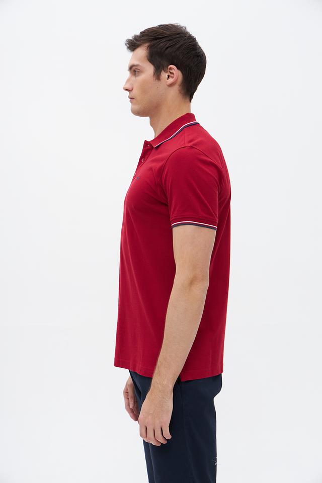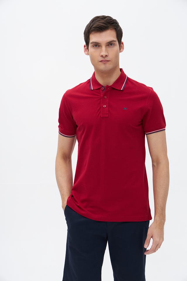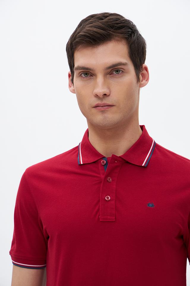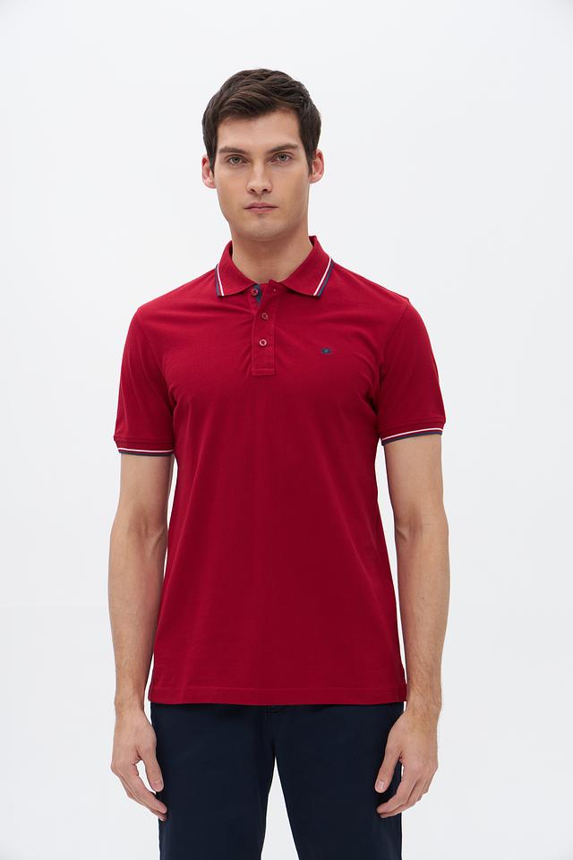 Мужское поло Granchio бордового цвета с контрастной полоской на воротнике и рукавах. Изготовлено из 100% хлопка, обеспечивающего комфорт и воздухопроницаемость. Стильный и универсальный вариант для повседневного гардероба. Состав: хлопок 100%