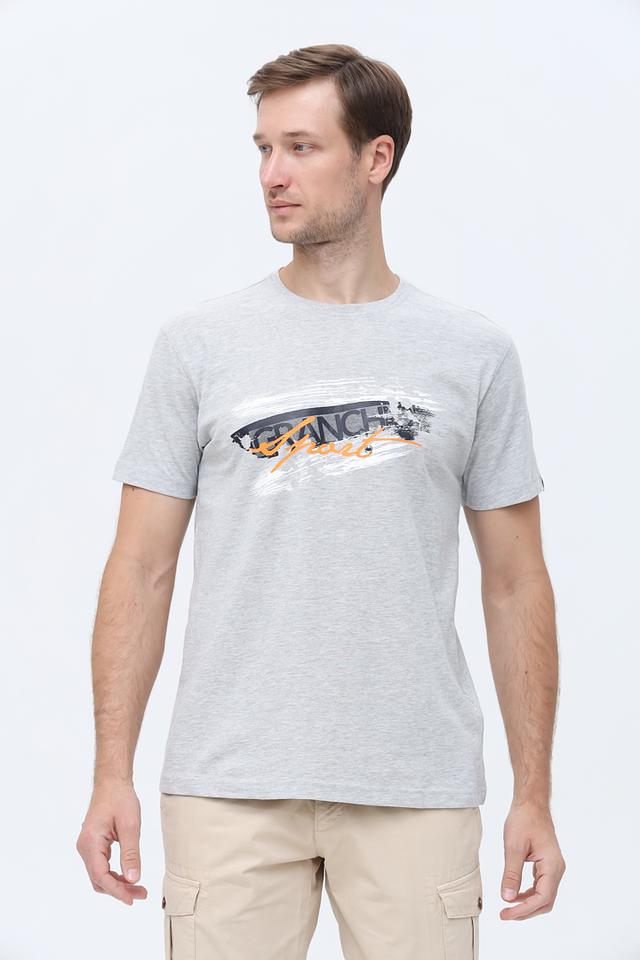 Мужская футболка Granchio серого меланжевого цвета с оригинальным принтом логотипа бренда. Изготовлена из 100% хлопка, обеспечивающего комфорт и воздухопроницаемость. Состав: хлопок 100%