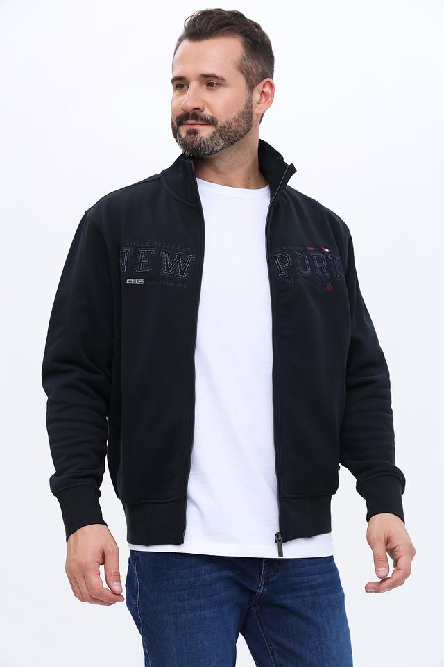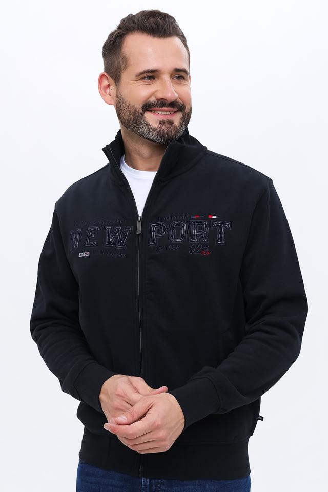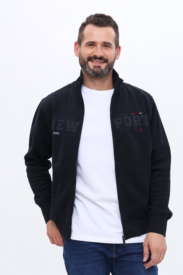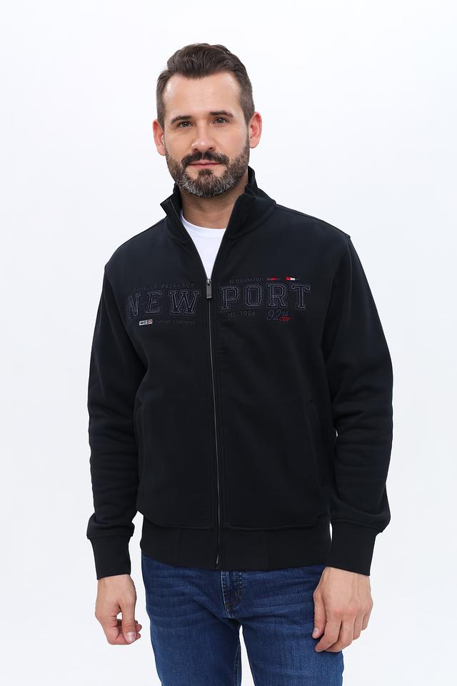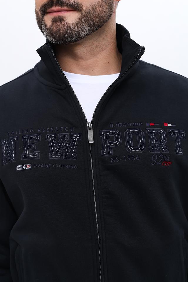 Кардиган имеет удобную застёжку на молнии, что позволяет регулировать степень тепла и создавать разные образы. На груди и рукавах размещены вышитые логотипы и надписи "NEW PORT", добавляющие изделию индивидуальность и стиль.