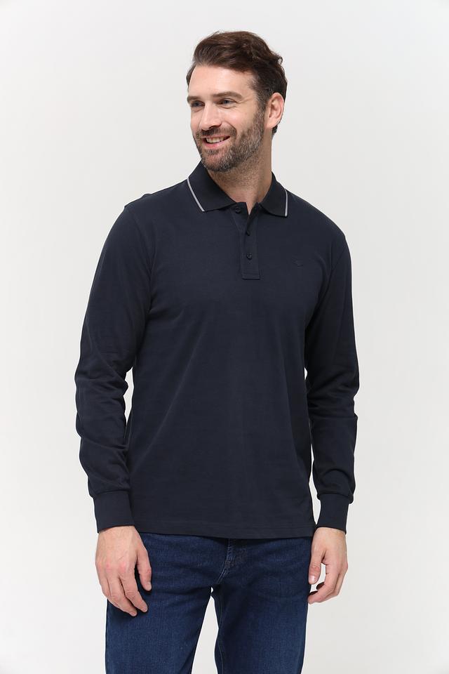 Мужское поло от бренда Granchio выполнено в классическом стиле с длинным рукавом. Основной цвет изделия – тёмно-синий, что делает его универсальным и подходящим для различных образов.