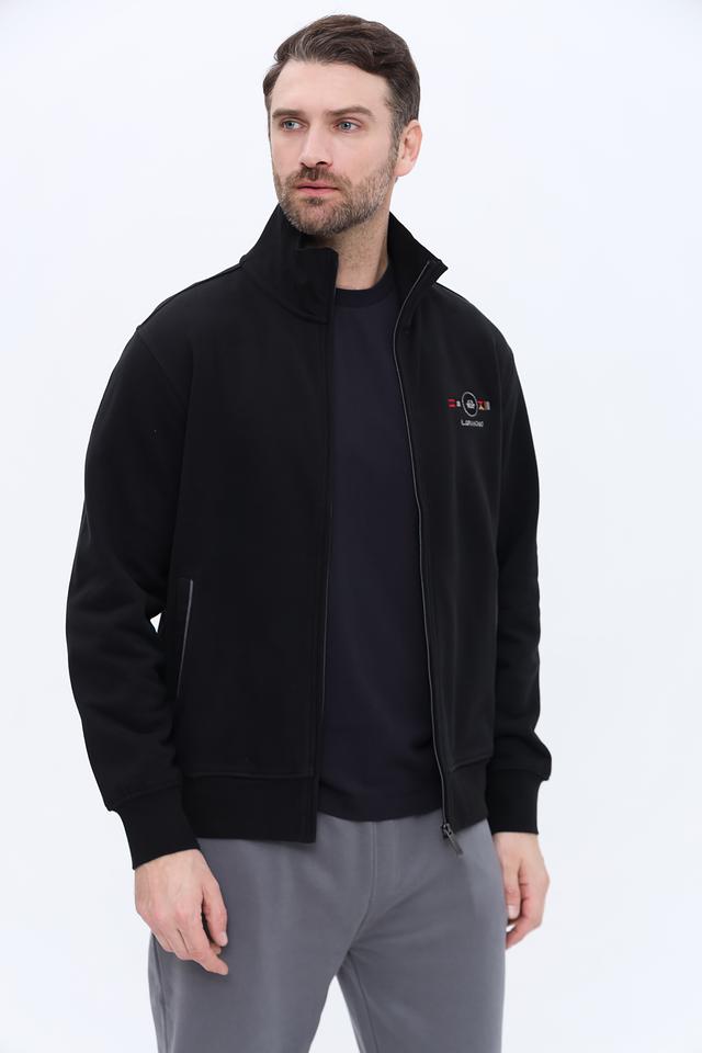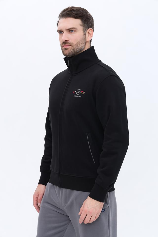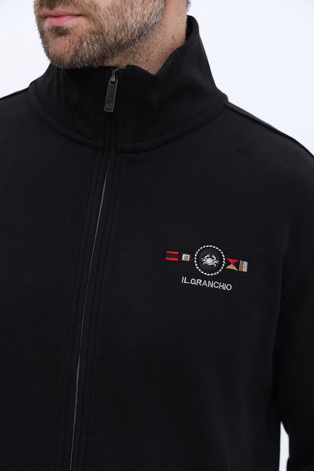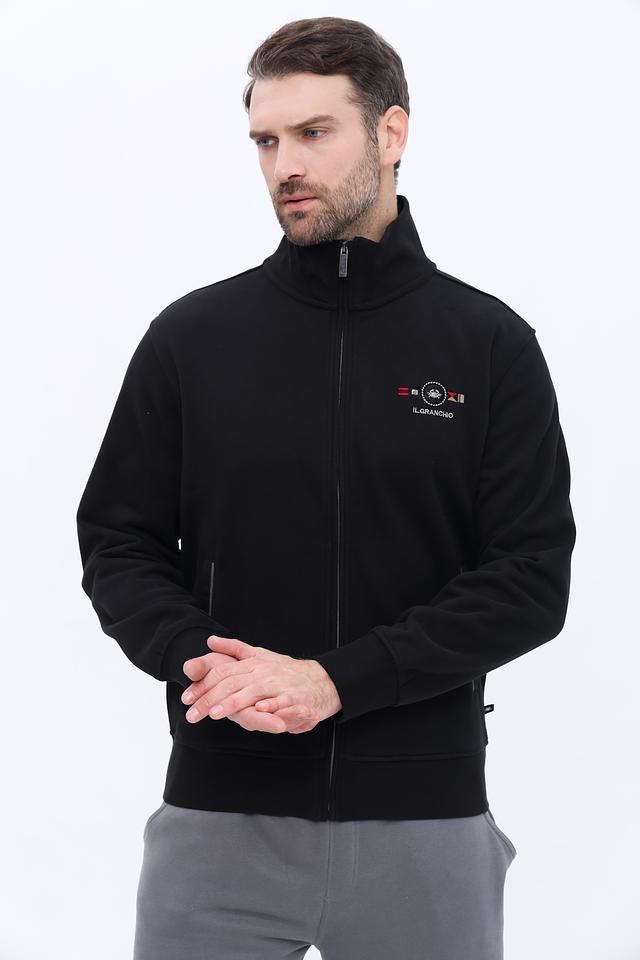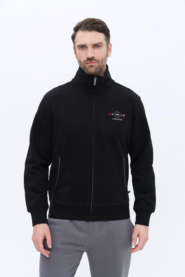 Мужской кардиган от бренда Granchio выполнен в классическом чёрном цвете. Модель имеет застёжку на молнии и воротник-стойку, что делает её универсальной для различных погодных условий.