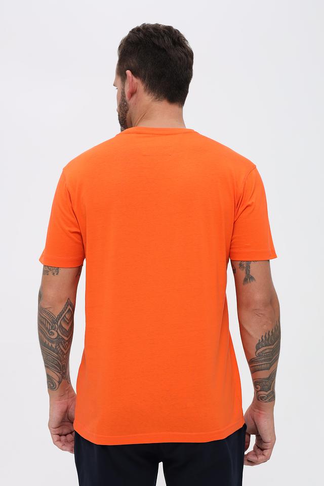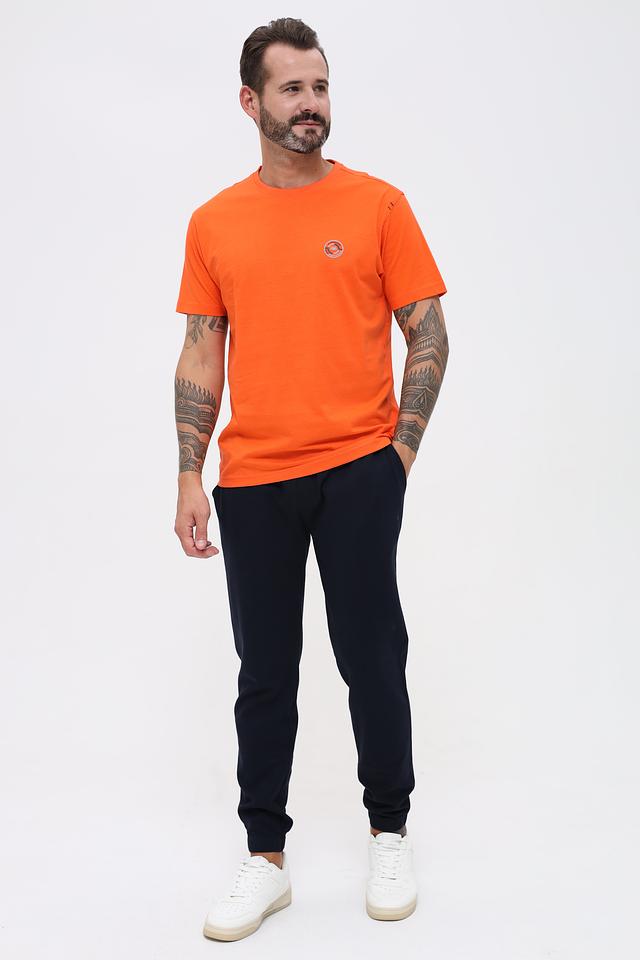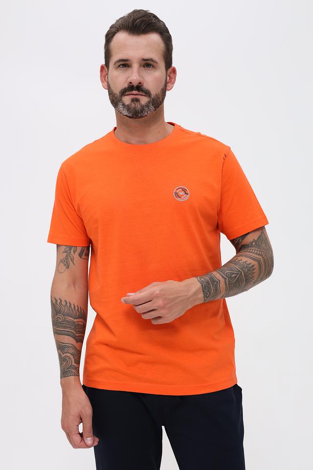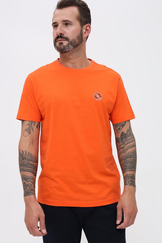 Яркий оранжевый цвет делает эту футболку заметной и стильной деталью вашего гардероба. Классический крой и круглый вырез горловины обеспечивают удобную посадку по фигуре.