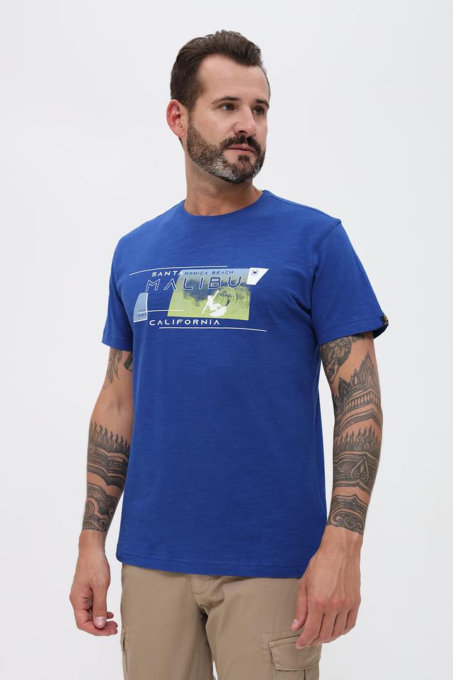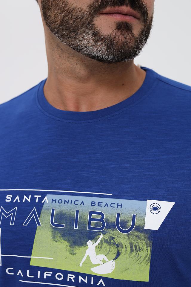 Синяя футболка Granchio с ярким принтом Malibu. Изготовлена из 100% хлопка, обеспечивая комфорт и воздухопроницаемость. Отличный выбор для повседневного образа. Состав: хлопок 100%