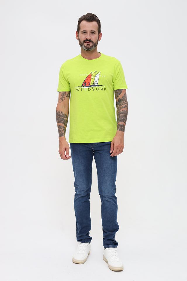 Мужская футболка Granchio лаймового цвета с ярким принтом в виде виндсерфера. Изготовлена из 100% хлопка, обеспечивающего комфорт и воздухопроницаемость. Стильный и удобный выбор для повседневной носки. Состав: хлопок 100%