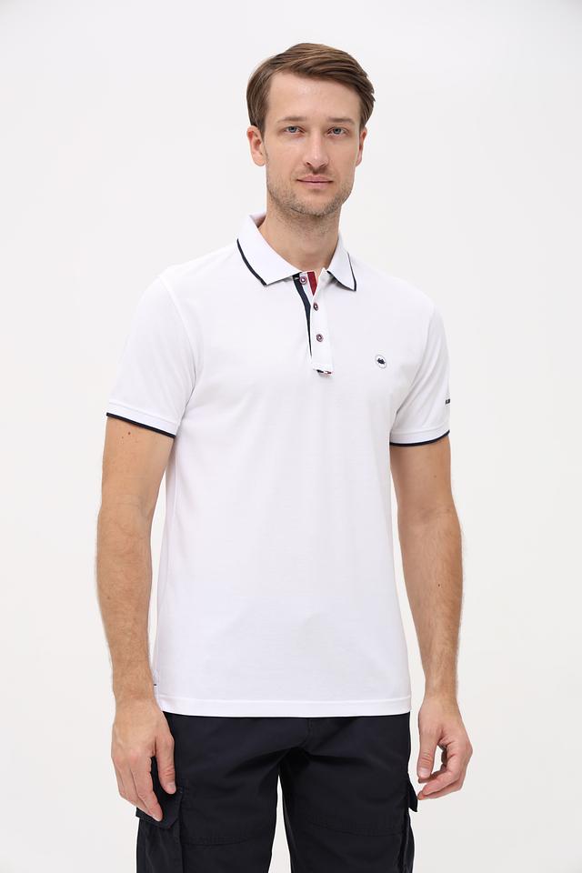 Мужское поло от бренда Granchio выполнено в белом цвете с черной отделкой по воротнику и рукавам. Эта модель сочетает в себе классический стиль и современный дизайн.