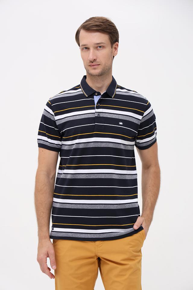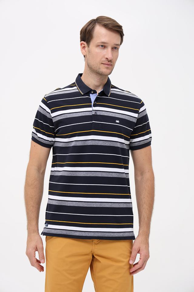 Мужское поло Granchio синего цвета с ярким полосатым принтом. Классический крой и 100% хлопковый состав обеспечивают комфорт и удобство в носке. Отличный выбор для повседневного образа. Состав: хлопок 100%
