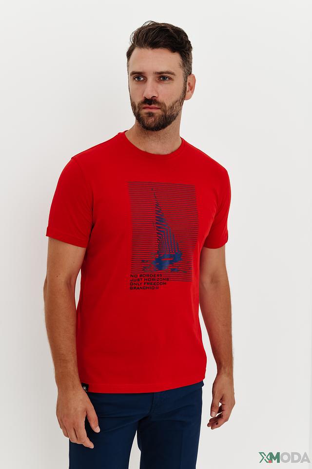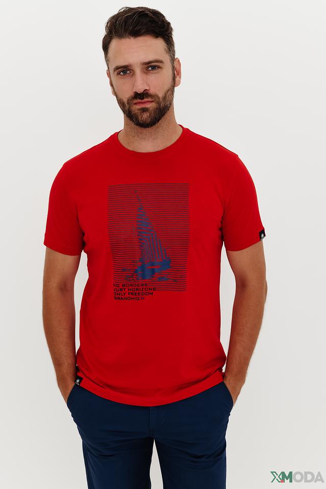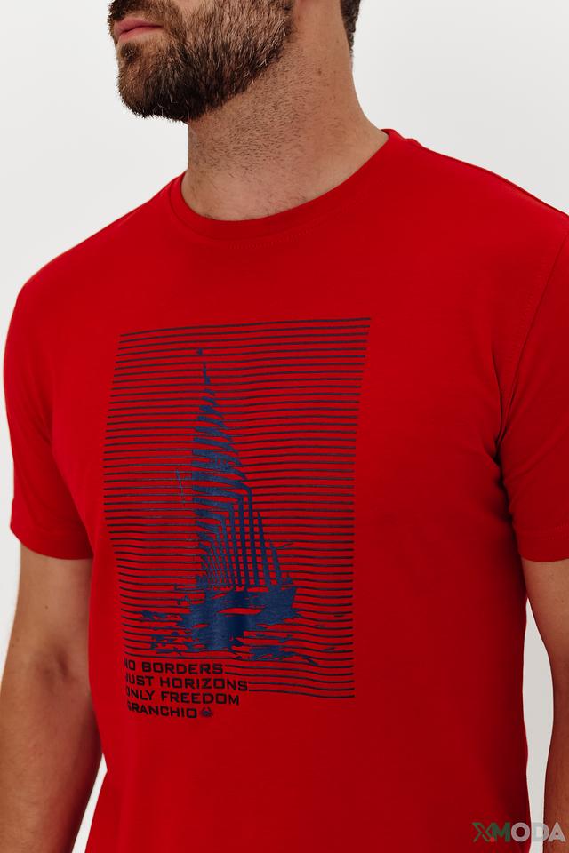 Мужская футболка Granchio красного цвета с оригинальным принтом. Изготовлена из 100% хлопка, обеспечивающего комфорт и воздухопроницаемость. Стильный дизайн и качественный материал делают эту футболку отличным выбором для повседневной носки. Состав: хлопок 100%