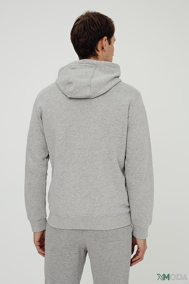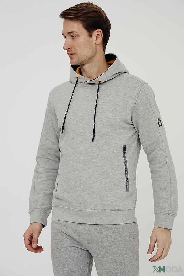 Мужской джемпер от бренда Granchio выполнен в сером цвете и имеет удобный капюшон с горчичной подкладкой. Модель оснащена карманом на молнии и шнурками для регулировки капюшона.