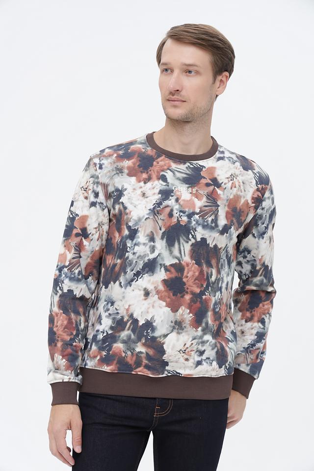 Мужской джемпер Guess коричневого цвета с ярким цветочным принтом. Изготовлен из мягкого хлопка с добавлением полиэстера для комфорта и долговечности. Стильный и удобный выбор для повседневного образа. Состав: хлопок 60%, полиэстер 40%