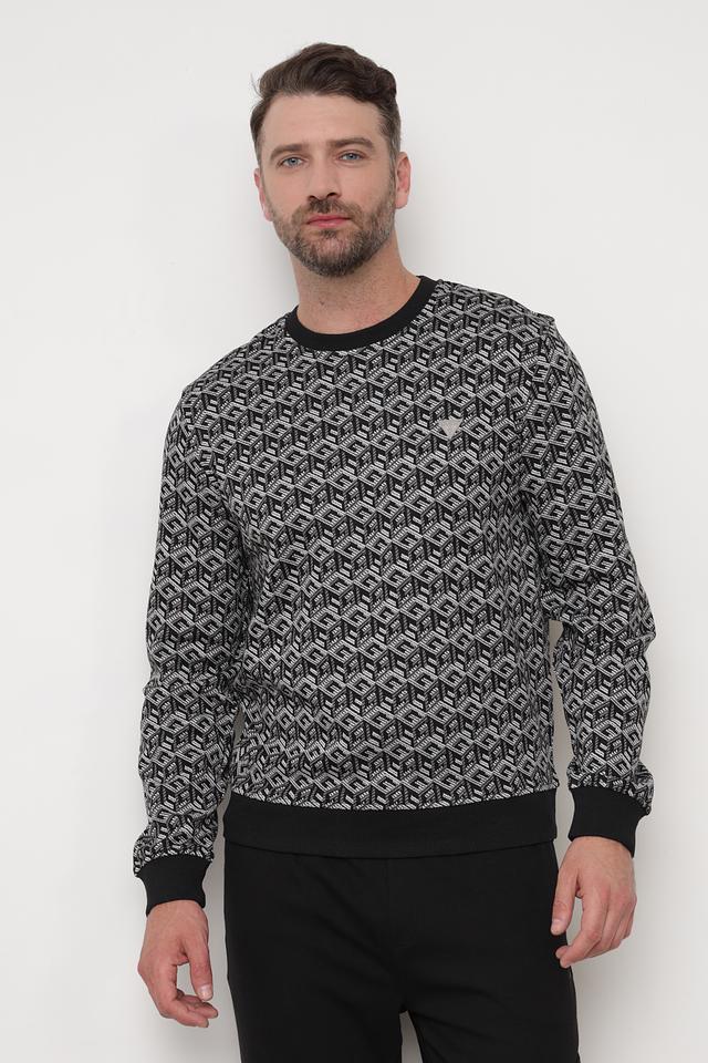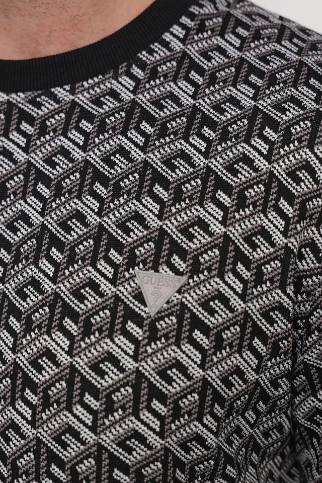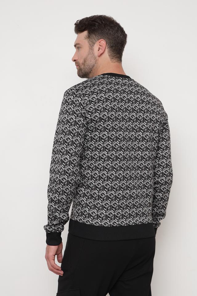Мужской джемпер Guess серого цвета с оригинальным геометрическим рисунком. Изготовлен из мягкого и приятного к телу сочетания полиэстера и вискозы, обеспечивающего комфорт в носке. Отличный выбор для создания стильного повседневного образа. Состав: полиэстер 72%, вискоза 27%, эластан 1%