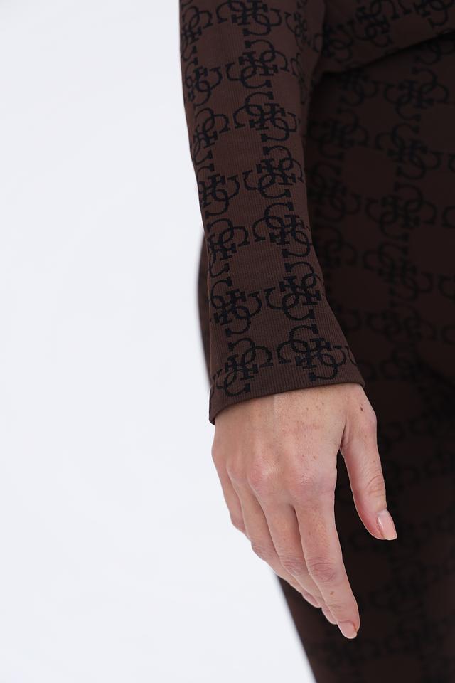Топ Guess коричневого цвета с логотипом — это стильное и удобное решение для создания модных образов. Изготовлен из полупрозрачной ткани с фирменным узором, идеально сочетается с брюками или юбками. Состав: полиэстер 48%, полиамид 44%, эластан 8%