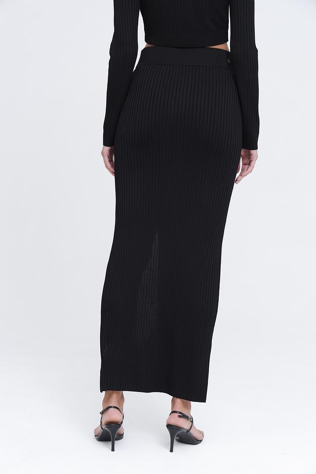 Чёрная юбка от Guess выполнена из мягкого трикотажа с вертикальной полоской. Модель имеет высокую посадку и стильный разрез сзади, что придает образу элегантность и женственность. Состав: вискоза 65%, полиамид 35%