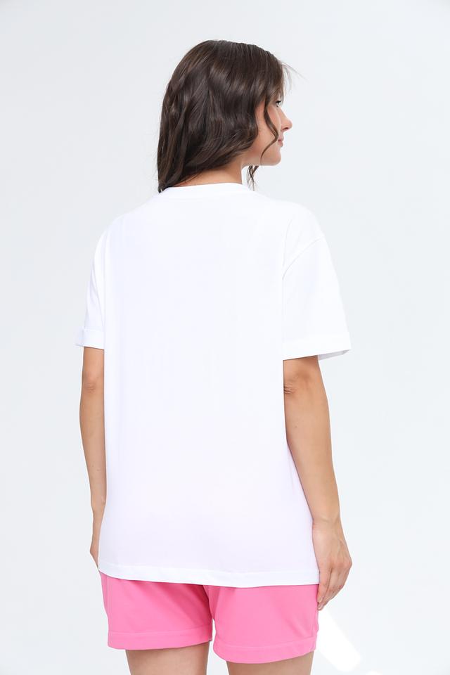 Эта футболка идеально подойдет для создания повседневных образов. Ее можно сочетать с джинсами, шортами, юбками или брюками. Дополните образ стильными аксессуарами, и вы будете выглядеть модно и уверенно.