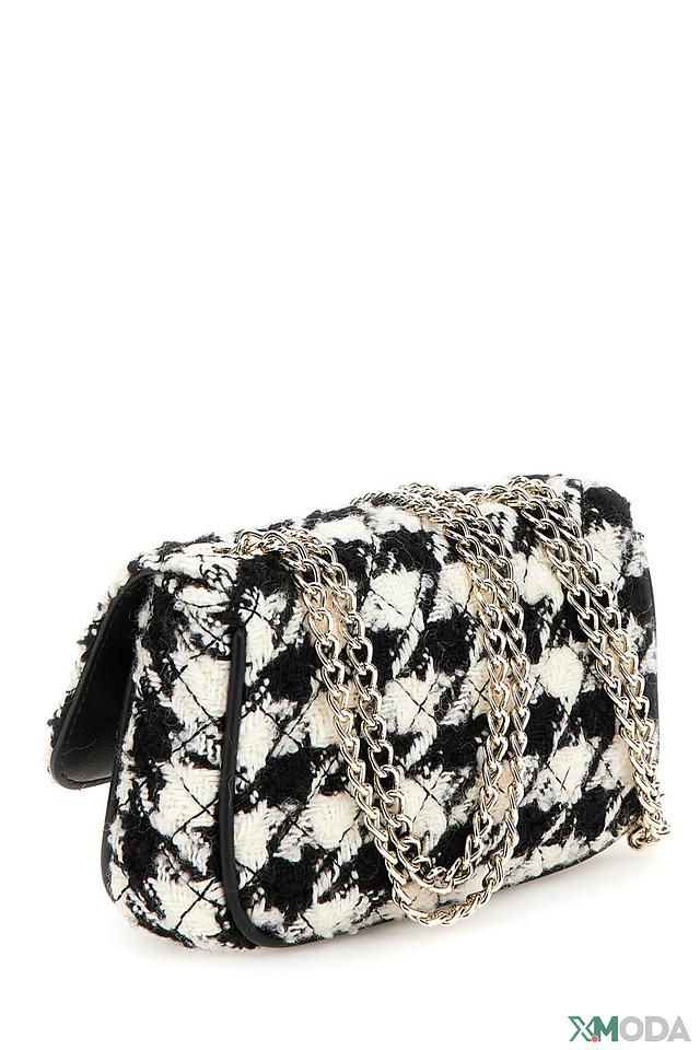 Стильная сумка Guess для девочки, выполнена в чёрно-белую клетку. Модель дополнена цепочкой и клапной застёжкой. Идеальный аксессуар для юных модниц. Состав: полиэстер 95%, металл 3%, хлопок 2%