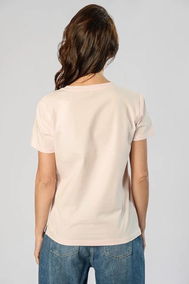 Женская футболка Guess нежно-розового цвета с узнаваемым логотипом бренда. Изготовлена из мягкого хлопка с добавлением эластана для комфорта и хорошей посадки. Стильный и удобный выбор для повседневного образа. Состав: хлопок 95%, эластан 5%