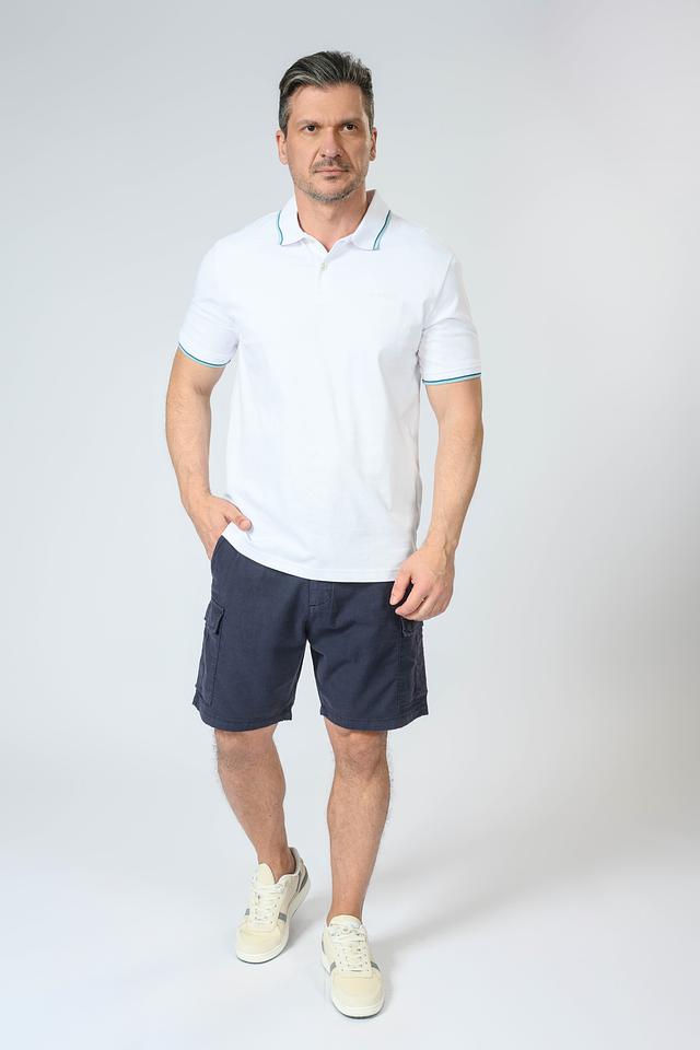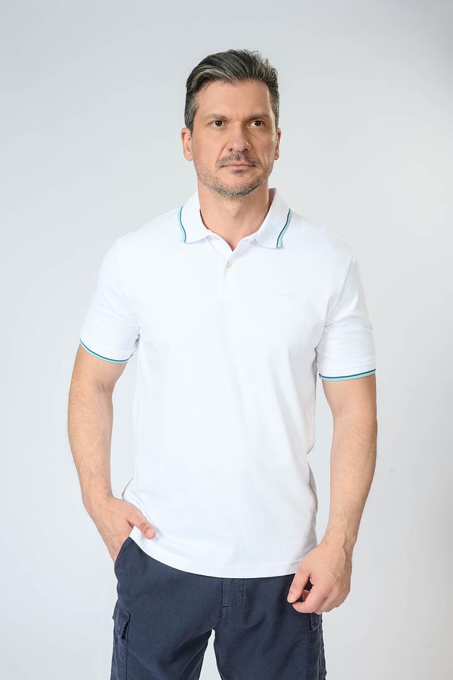 Белое мужское поло от Guess с контрастной отделкой. Классический крой и качественный хлопок с добавлением эластана обеспечивают комфорт и удобство в носке. Идеальный выбор для повседневного образа. Состав: хлопок 95%, эластан 5%