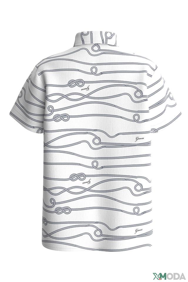 Эта рубашка от Guess станет отличным дополнением к гардеробу юного модника. Выполнена в белом цвете и украшена стильным принтом, имитирующим морские канаты, что придает ей свежий и летний вид.