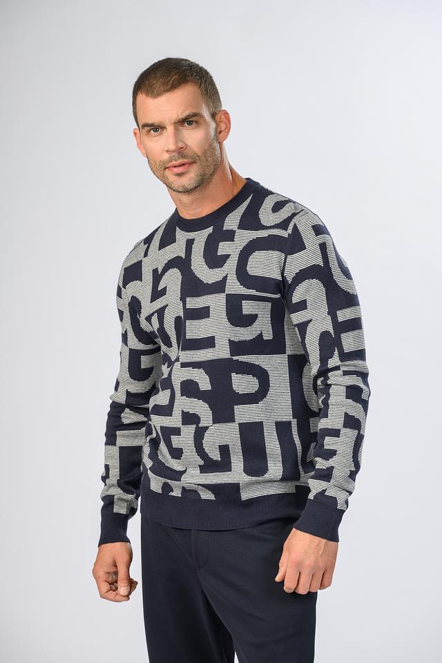 Мужской джемпер Guess синего цвета с оригинальным логотипом — стильное и комфортное решение для повседневного гардероба. Изготовлен из мягкого хлопка с добавлением модала для приятных тактильных ощущений. Состав: хлопок 60%, модал 40%