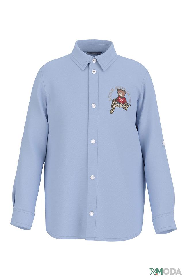 Стильная рубашка Guess для мальчика, светло-голубого цвета, украшена ярким принтом с милым медвежонком. Изготовлена из 100% хлопка, обеспечивающего комфорт и удобство в носке. Состав: хлопок 100%