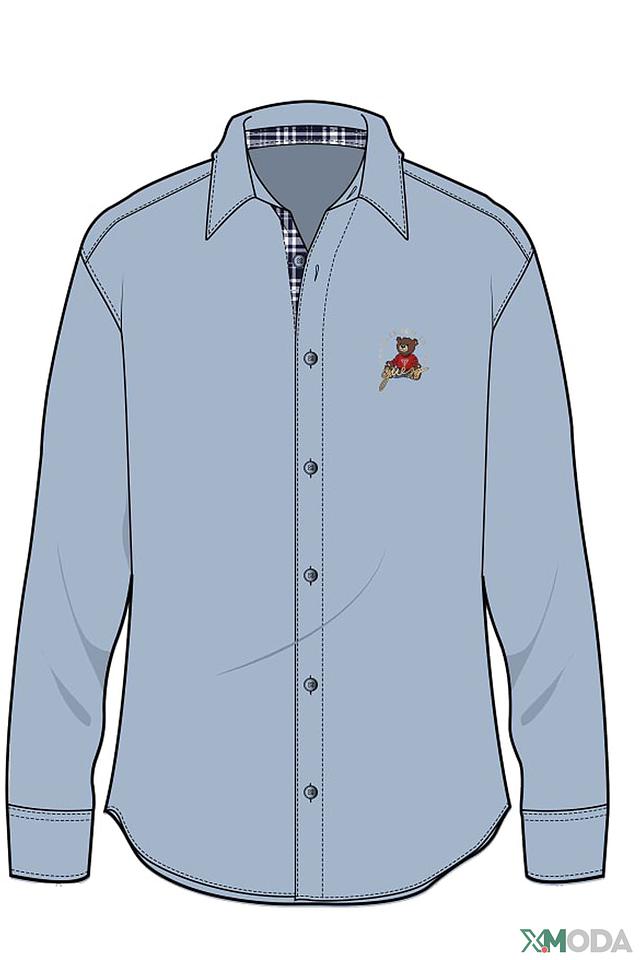 Основным акцентом является яркий принт с изображением милого медвежонка, который придает рубашке игривый и запоминающийся вид. Рубашка имеет классический крой с длинными рукавами и отложным воротником.