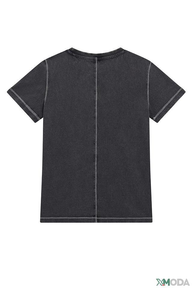 Ткань футболки имеет слегка текстурированную поверхность, что добавляет ей интересный вид. Отделка горловины и рукавов выполнена аккуратной строчкой, что обеспечивает долговечность изделия. Эта футболка идеально подходит для повседневной носки, активных игр и прогулок.