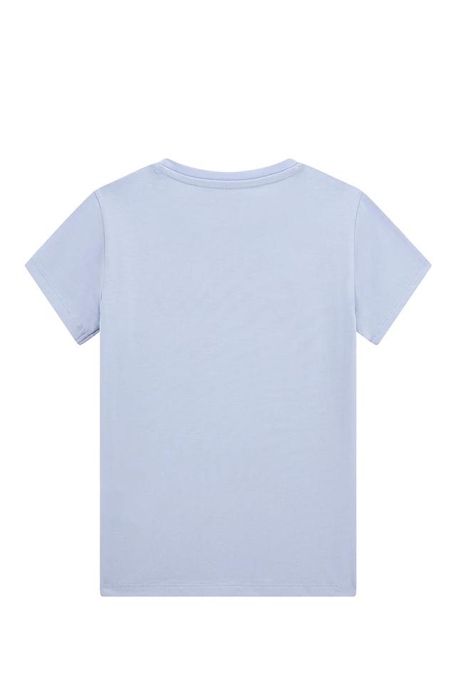 Голубая футболка Guess для девочек с очаровательным принтом медвежонка. Изготовлена из мягкого хлопка с добавлением эластана для комфорта и свободы движений. Стильный и удобный вариант для повседневной носки. Состав: хлопок 95%, эластан 5%