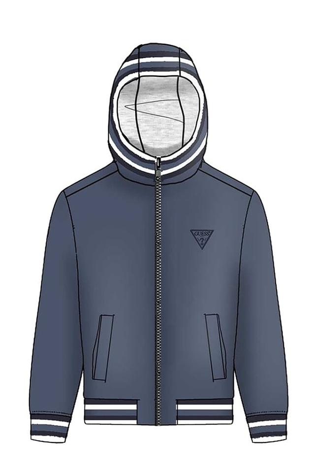 Синяя куртка Guess для мальчиков, выполнена из 100% полиэстера. Модель с капюшоном и логотипом бренда на груди, идеально подходит для прохладной погоды. Состав: полиэстер 100%