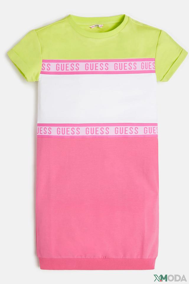 Это стильное платье от бренда Guess станет отличным выбором для юной модницы. Платье выполнено в яркой цветовой гамме, сочетающей в себе розовый, белый и лаймовый цвета.