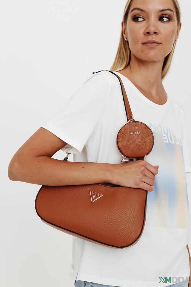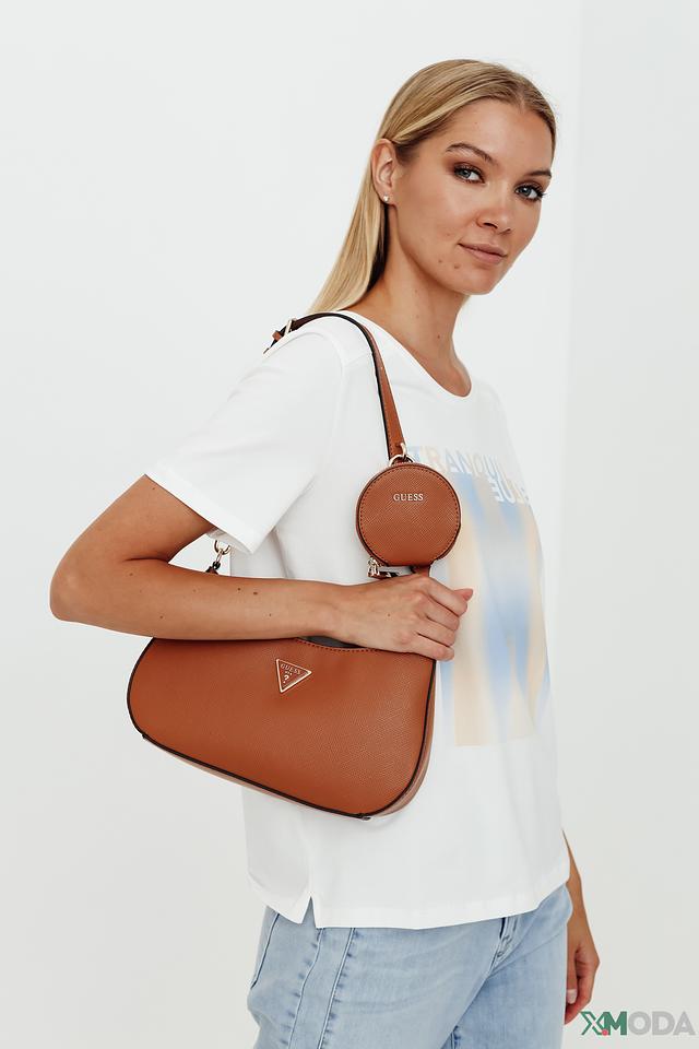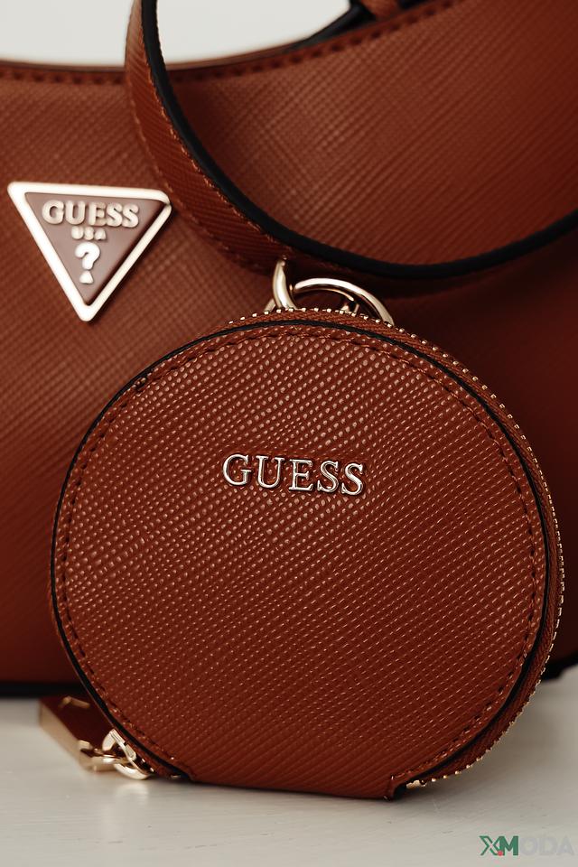 Модель имеет удобную форму и размер, идеально подходящие для повседневного использования. В комплекте идет небольшой кошелек на молнии, который можно использовать отдельно или прикрепить к сумке. Фирменный логотип Guess придает сумке узнаваемость и подчеркивает ее принадлежность к известному бренду.