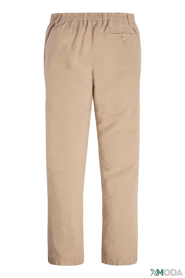 Брюки имеют классический крой с прямыми штанинами и удобным поясом на резинке. Материал – сочетание льна (55%) и хлопка (45%), что обеспечивает комфорт, воздухопроницаемость и приятные тактильные ощущения. Лён придает брюкам лёгкую текстуру и натуральный вид, а хлопок – мягкость и удобство в носке.