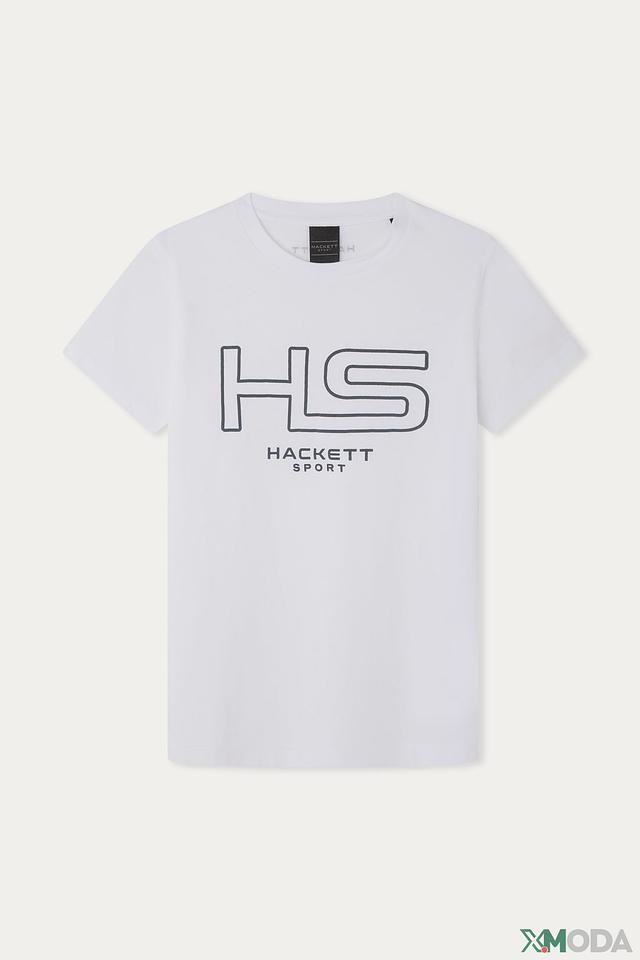 Футболка имеет классический крой, который не сковывает движения, и короткие рукава, идеально подходящие для теплой погоды. На груди расположен логотип бренда "HS" Hackett Sport, выполненный в контрастном цвете, а на спине – надпись "HACKETT".