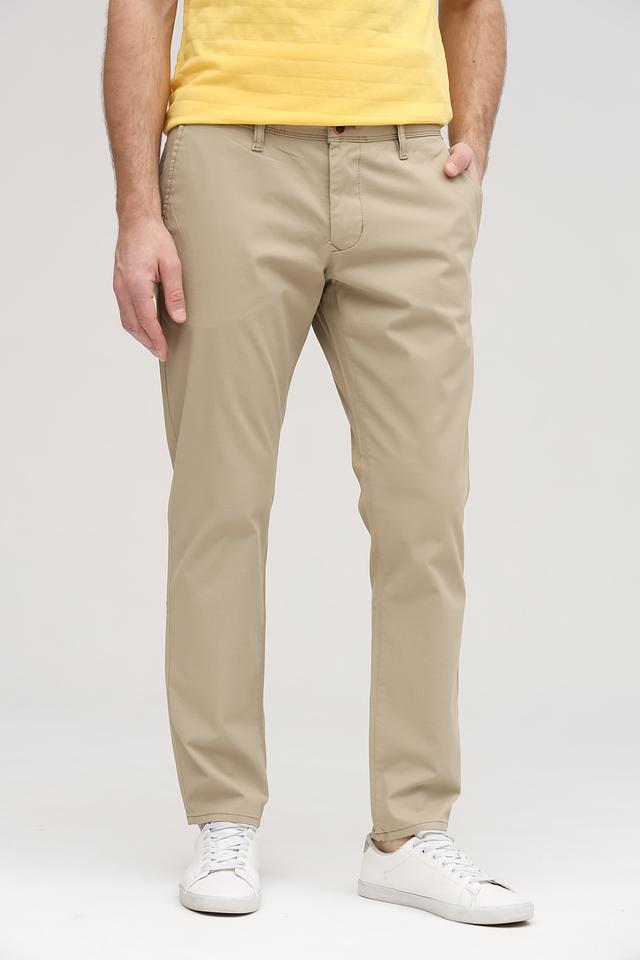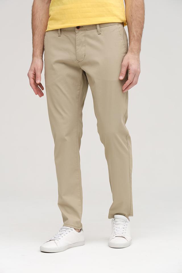 Мужские брюки чинос от бренда Hattric выполнены в бежевом цвете. Модель имеет классический крой с прямыми штанинами и стандартной посадкой. Брюки застегиваются на молнию и пуговицу, а также оснащены боковыми и задними карманами.