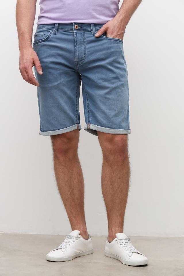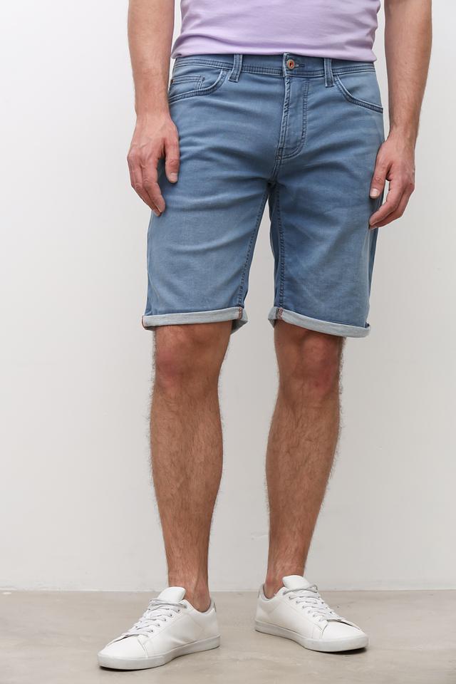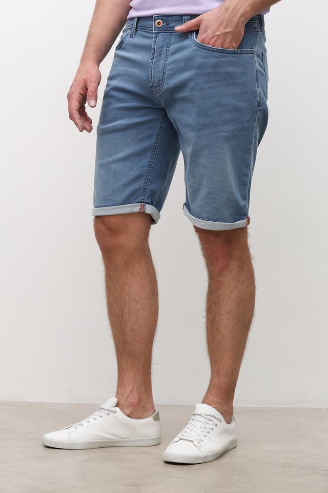 Застежка на молнию и пуговицу. Шорты оснащены стандартным набором карманов – два боковых и два задних. На задних карманах присутствует декоративная стежка. Небольшой подворот на штанинах добавляет образу непринужденности.