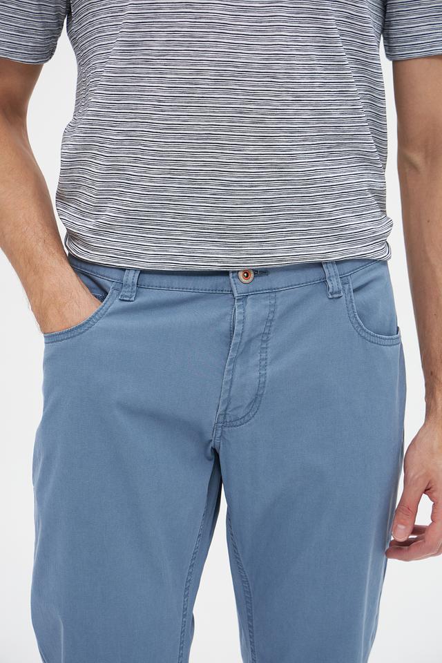 Застежка на молнию и пуговицу, стандартная высота пояса. Брюки оснащены двумя боковыми и двумя задними карманами. Состав: 96% хлопок, 4% эластан.
